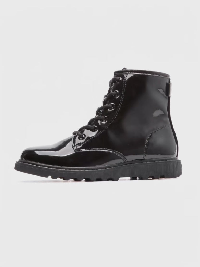 Scuff-Resistant Patent Upper: Keeps boots looking new, even through playground adventures.