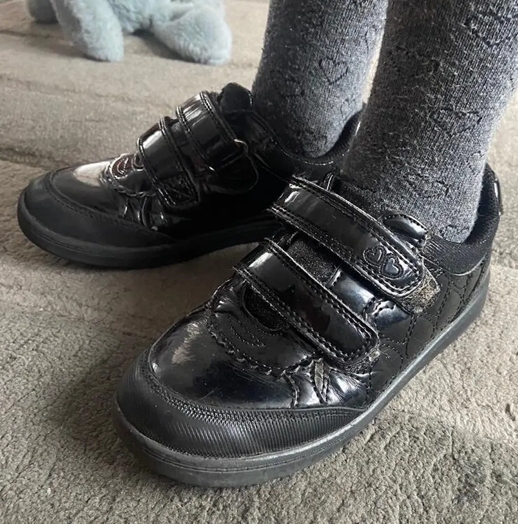 LIA - Rubber Girls Patent Double Rip-Tape Unicorn School Shoes